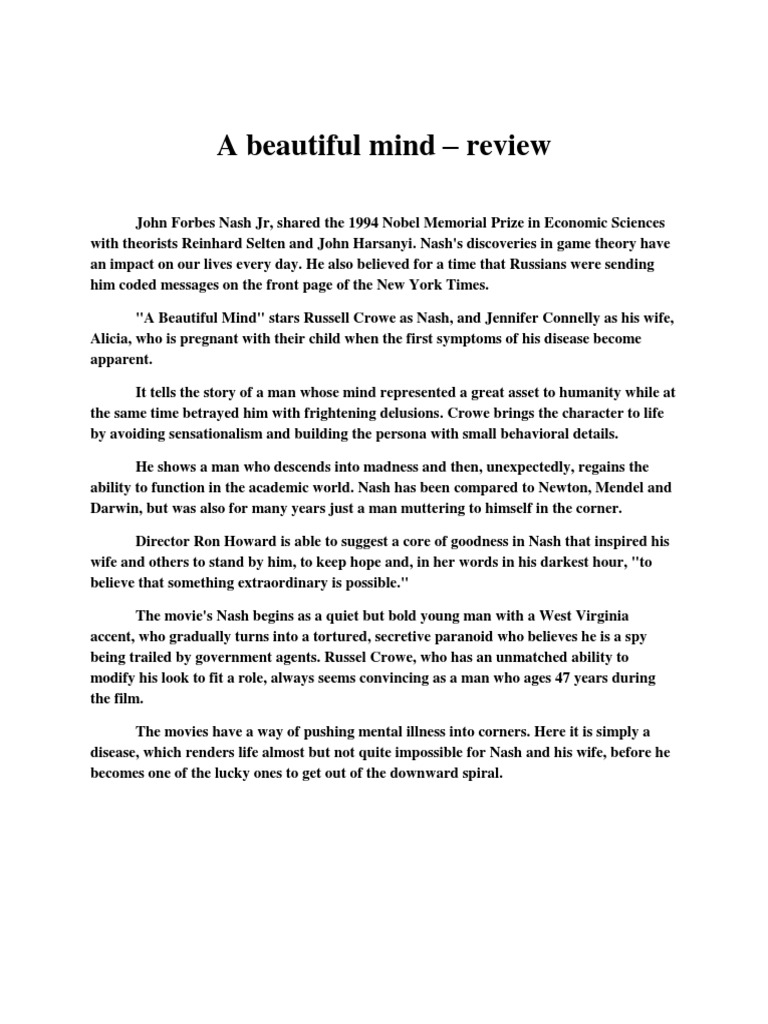A Beautiful Mind Movie Review Leisure